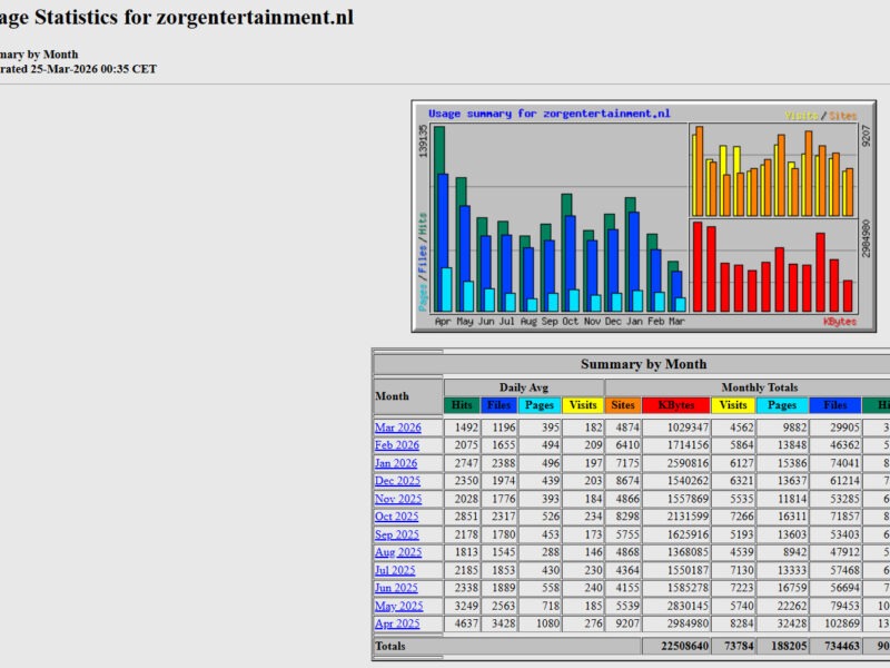 De vraag of deze sitecluster wel tot boekingen leidt, wordt vaak gesteld. Het is voor mij niet meetbaar hoeveel boekingen voortkomen uit de verschillende vermeldingen. De klant kan immers rechtstreeks contact op nemen met de betreffende artiest via zijn pagina. Ook is het voor mij niet te achterhalen of er contacten en/of boekingen tot stand zijn komen via de eigen websites na verwijzing via deze sitecluster. Ik ben immers helemaal niet betrokken bij contacten tussen aanvrager en aanbieder. Wat ik wel kan zien zijn de bezoekersaantallen van de diverse websites. De bezoekersaantallen groeien nog steeds! De interpretatie van de getallen en metingen is aan de deskundigen. Hierbij de statistieken per maand: